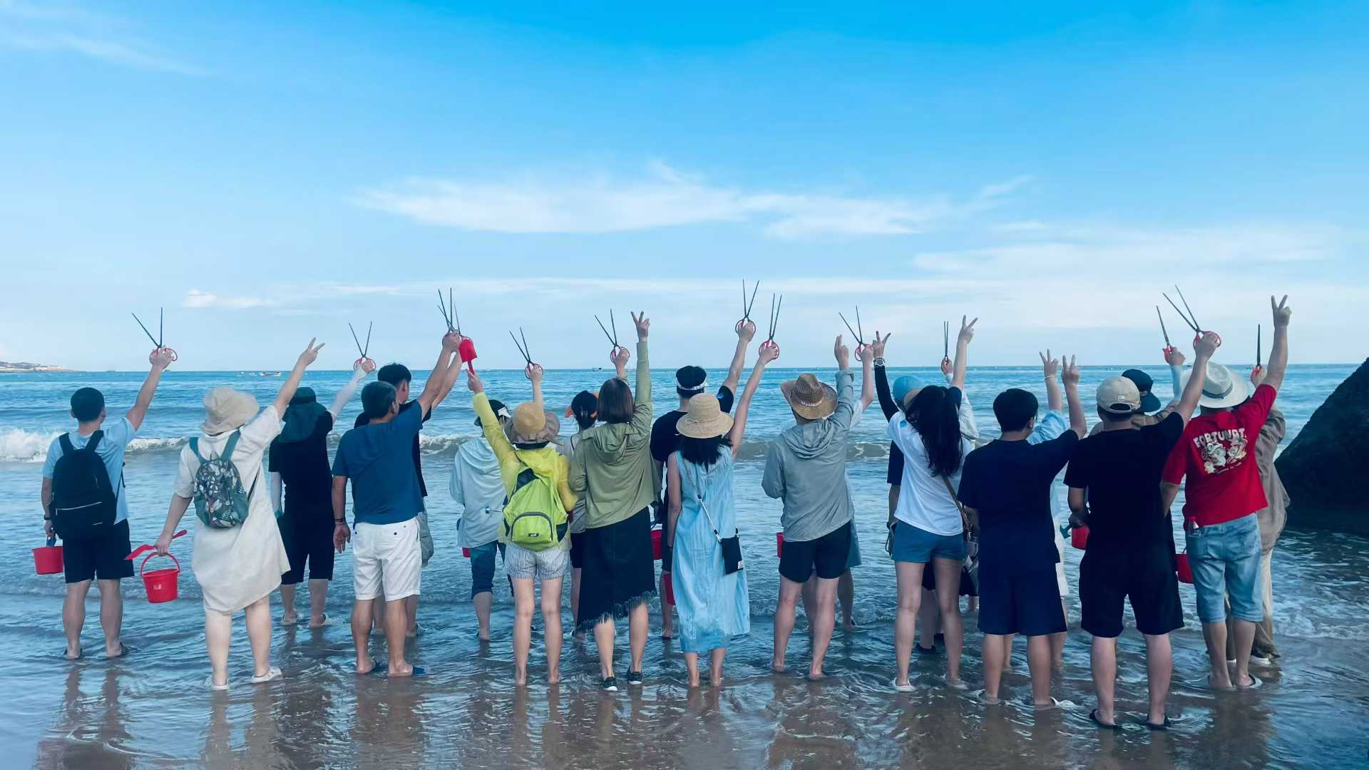 退潮后的平潭沙滩像藏着无数个“惊喜盲盒”,同事们瞬间化身 “赶海小能手”,有的蹲在沙滩上抓寄居蟹、挖花蛤,还有人意外发现了躲在礁石缝里的八爪鱼、金蟳蟹,欢呼声、笑声在海边此起彼伏。大家一边分享着 “赶海技巧”,一边把收获的“战利品”装进小桶,最后变成餐桌上最新鲜的海鲜大餐。